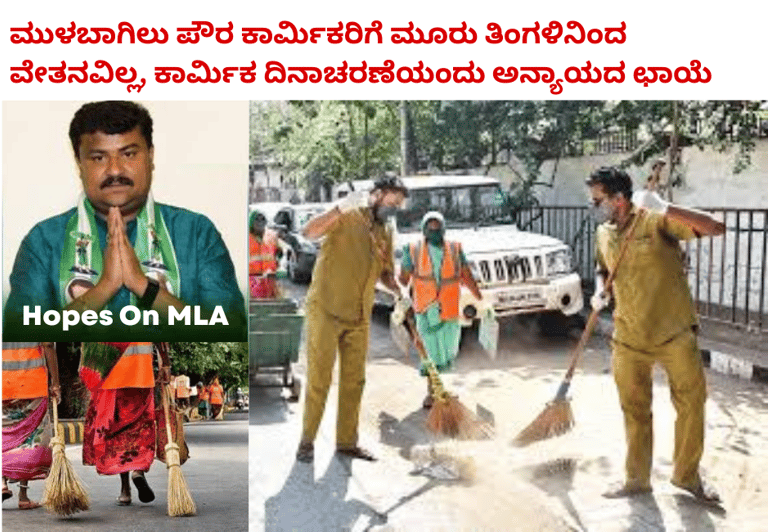 ಮುಳಬಾಗಿಲು ಪೌರ ಕಾರ್ಮಿಕರಿಗೆ ಮೂರು ತಿಂಗಳಿನಿಂದ ವೇತನವಿಲ್ಲ, ಕಾರ್ಮಿಕ ದಿನಾಚರಣೆಯಂದು ಅನ್ಯಾಯದ ಛಾಯೆ