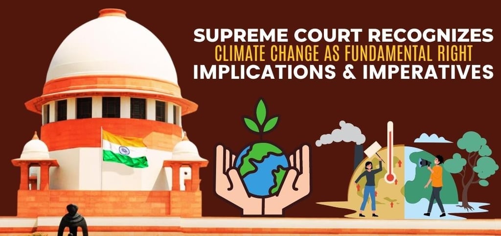 ಭಾರತೀಯ ಸರ್ವೋಚ್ಚ ನ್ಯಾಯಾಲಯವು ಹವಾಮಾನ ಬದಲಾವಣೆಯ ವಿರುದ್ಧದ ಹಕ್ಕನ್ನು ಗುರುತಿಸುವುದು ಪರಿಸರ ಸಂರಕ್ಷಣೆ ಮತ್ತು ಮಾನವ ಹಕ್ಕುಗಳ ಕಡೆಗೆ ನಿರ್ಣಾಯಕ ಹೆಜ್ಜೆಯನ್ನು ಸೂಚಿಸುತ್ತದೆ ಮತ್ತು ಆದ್ದರಿಂದ, ಇದು ಯೋಗ್ಯವಾದ ಅಧಿಕವಾಗಿದೆ. ಈ ಅಂಗೀಕಾರವು ಹವಾಮಾನ ಬದಲಾವಣೆಯ ದುಷ್ಪರಿಣಾಮಗಳನ್ನು ಪರಿಹರಿಸಲು ಪರಿಣಾಮಕಾರಿ ಕ್ರಮಗಳನ್ನು ಕೈಗೊಳ್ಳಲು ಸರ್ಕಾರದ ಮೇಲೆ ಬಾಧ್ಯತೆಯನ್ನು ಸೃಷ್ಟಿಸುತ್ತದೆ, ಪರಿಸರವನ್ನು ಮಾತ್ರವಲ್ಲದೆ ಜೀವನ ಮತ್ತು ಸಮಾನತೆಯ ಹಕ್ಕುಗಳಂತಹ ಮೂಲಭೂತ ಹಕ್ಕುಗಳನ್ನು ರಕ್ಷಿಸುತ್ತದೆ. ಇತ್ತೀಚಿನ ತೀರ್ಪು ಪರಿಸರ ಸಂರಕ್ಷಣೆ, ಸುಸ್ಥಿರ ಅಭಿವೃದ್ಧಿ ಮತ್ತು ಮಾನವ ಯೋಗಕ್ಷೇಮದ ಪರಸ್ಪರ ಸಂಬಂಧವನ್ನು ಒತ್ತಿಹೇಳುತ್ತದೆ.