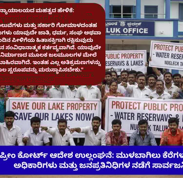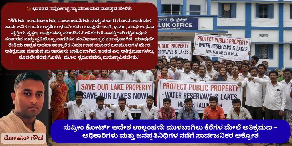 ಸುಪ್ರೀಂ ಕೋರ್ಟ್ ಆದೇಶ ಉಲ್ಲಂಘನೆ: ಮುಳಬಾಗಿಲು ಕೆರೆಗಳ ಮೇಲೆ ಅತಿಕ್ರಮಣ – ಅಧಿಕಾರಿಗಳು ಮತ್ತು ಜನಪ್ರತಿನಿಧಿಗಳ ನಡೆಗೆ ಸಾರ್ವಜನಿಕರ ಆಕ್ರೋಶ